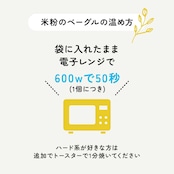 ・袋に入れたまま、1個につき 50秒(600w)レンジで温めてください。ハード系がお好きな方はレンジの後にトースターで1分程焼いてください。