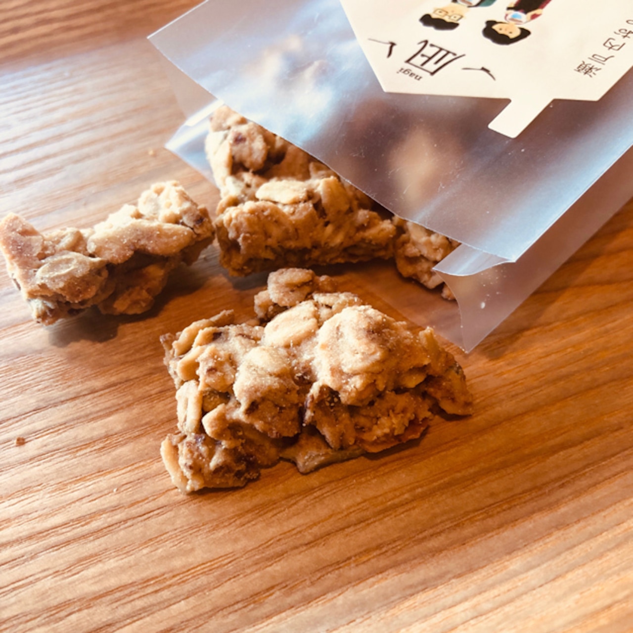 有機オートミールやナッツ、キヌアといった噛み応えのある材料を、玄米粉、てん菜糖、米油がバランス良くまとめてくれています。レーズンをミキサーでペースト状にして生地に混ぜ合わせているため、深みのある甘味をお楽しみいただけると思います。