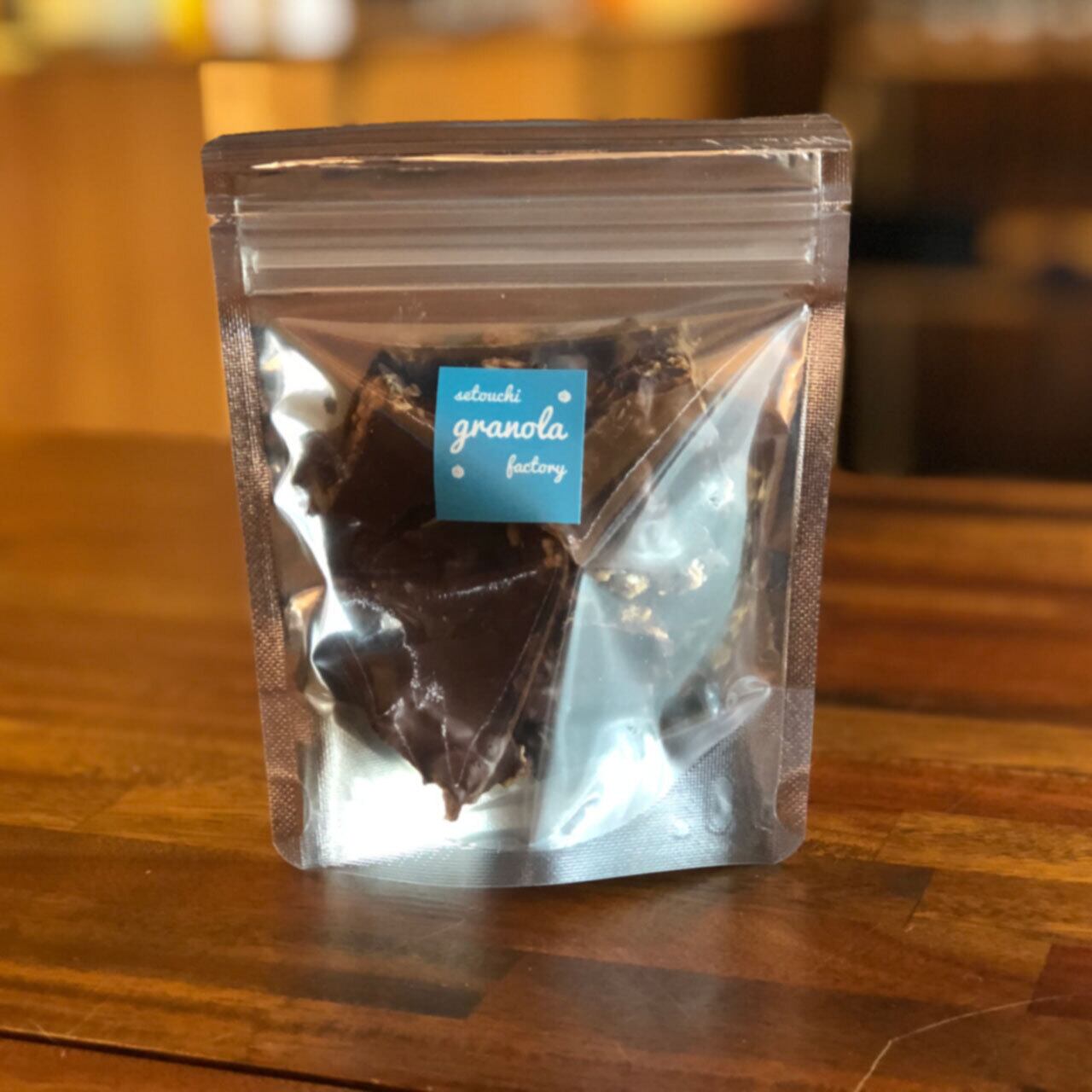 玄米グラノーラをチョコレートでコーティングしました。ちょうどいい割合でグラノーラとチョコレートを合わせて、食べやすい大きさに仕上げました。この時期だけのグラノーラ菓子をどうぞお楽しみ下さい。